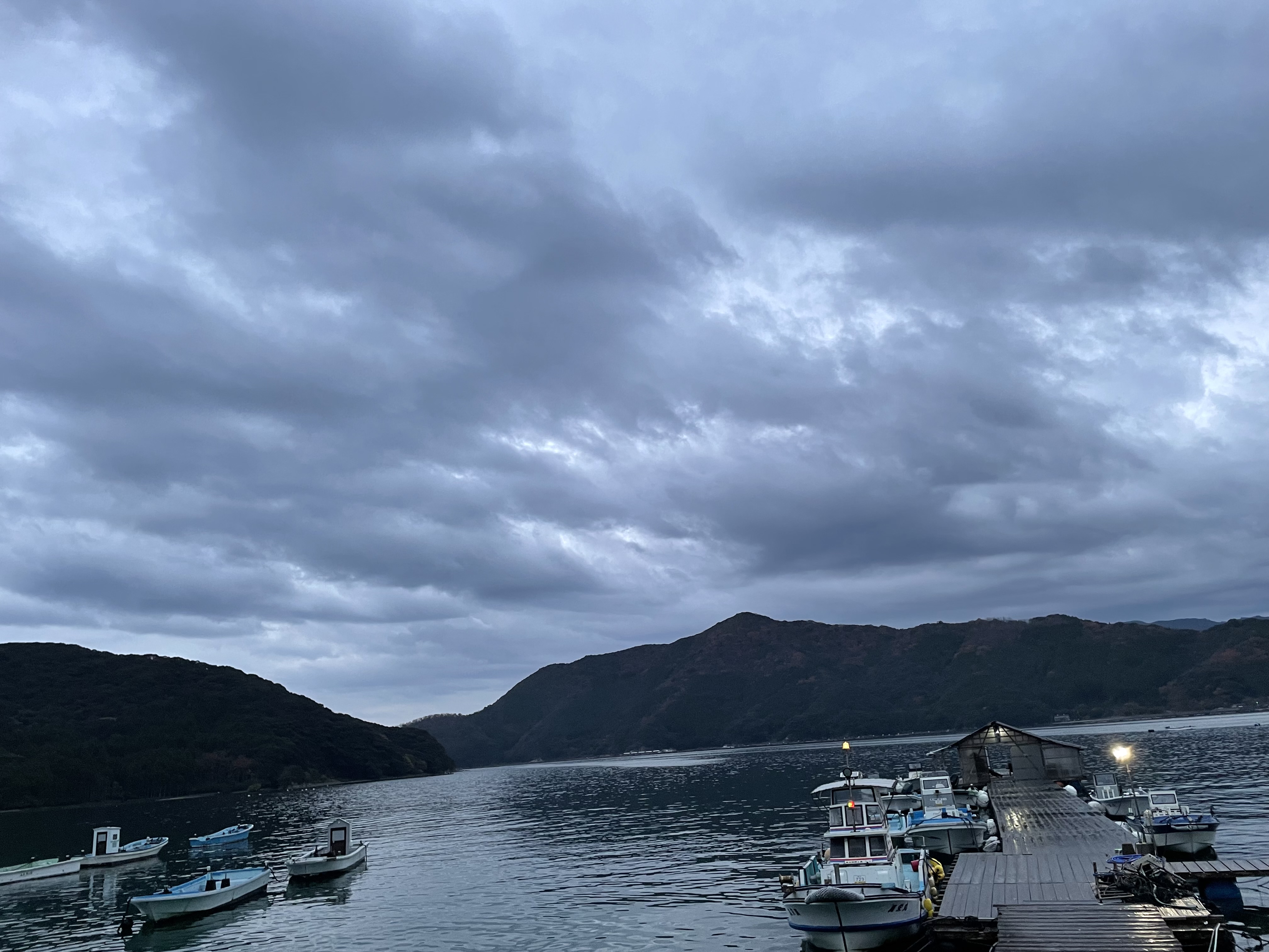 今朝は湾内、沖ともに雨も上がり凪いでいます