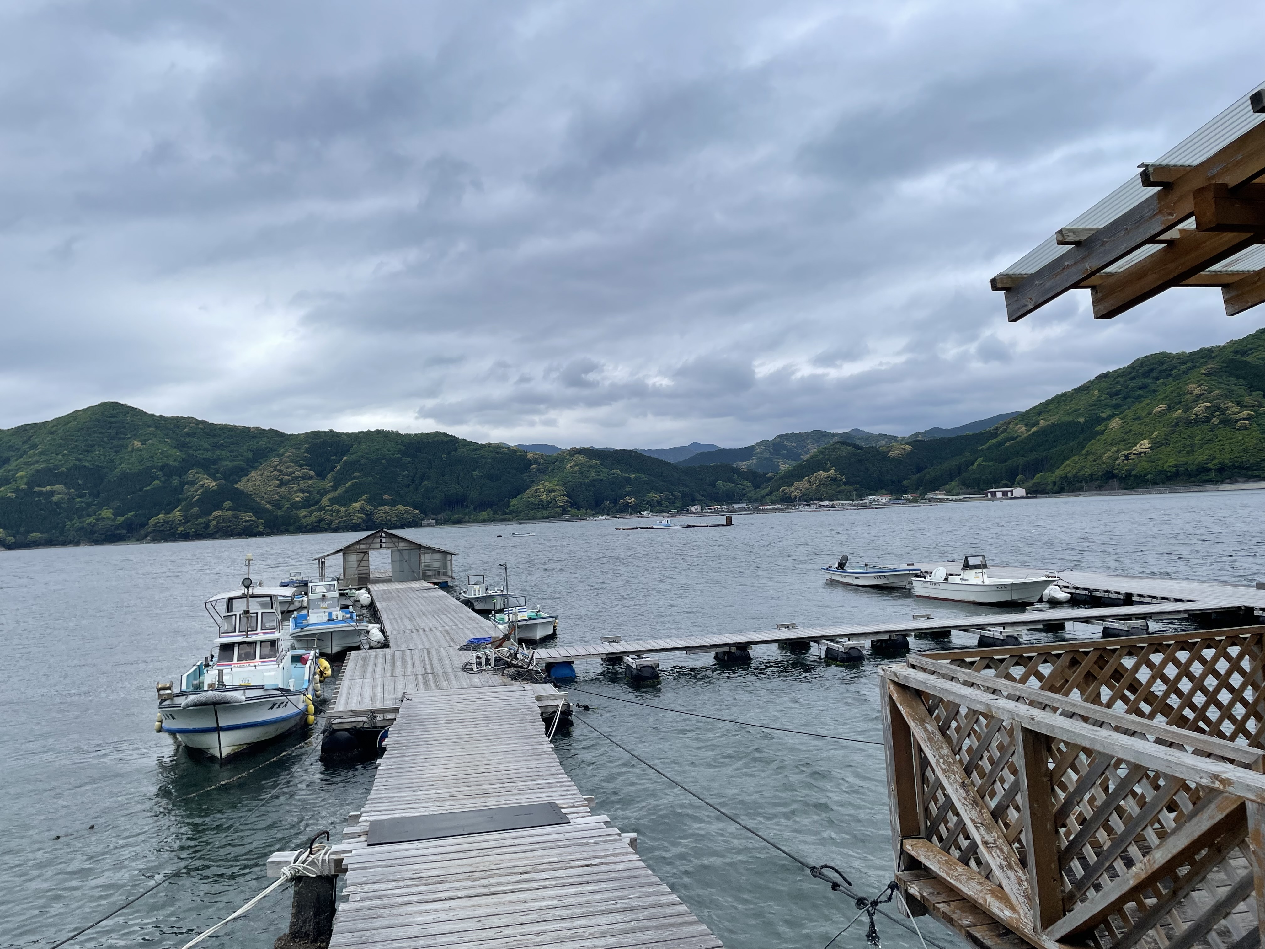 今朝の湾内は曇り、北風です