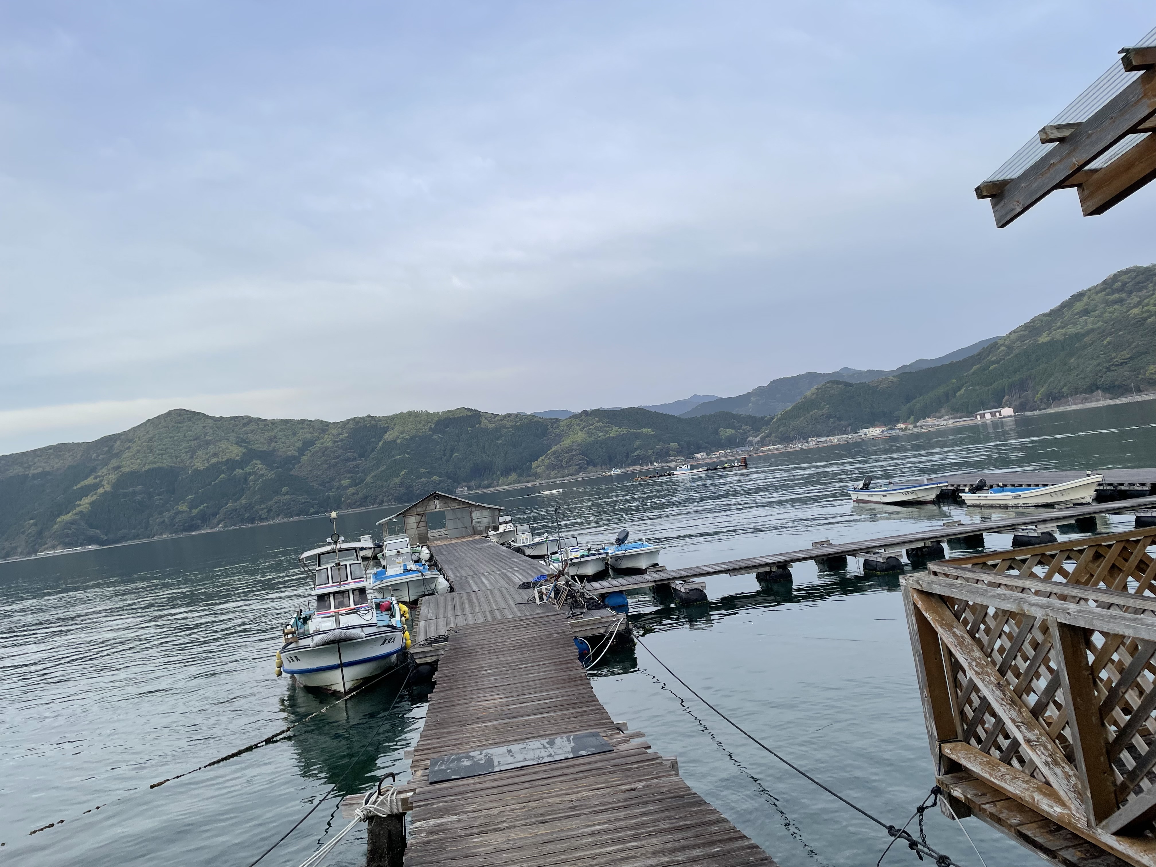 今朝の湾内は雨は上がり、凪いでいます