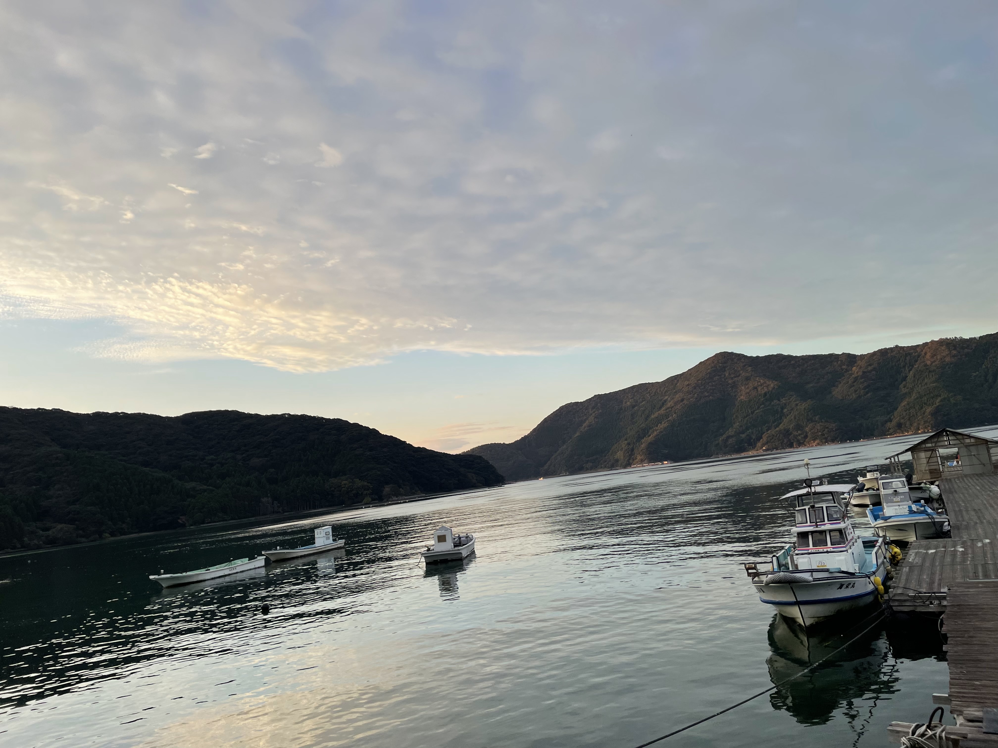 今朝の湾内は凪いでいます