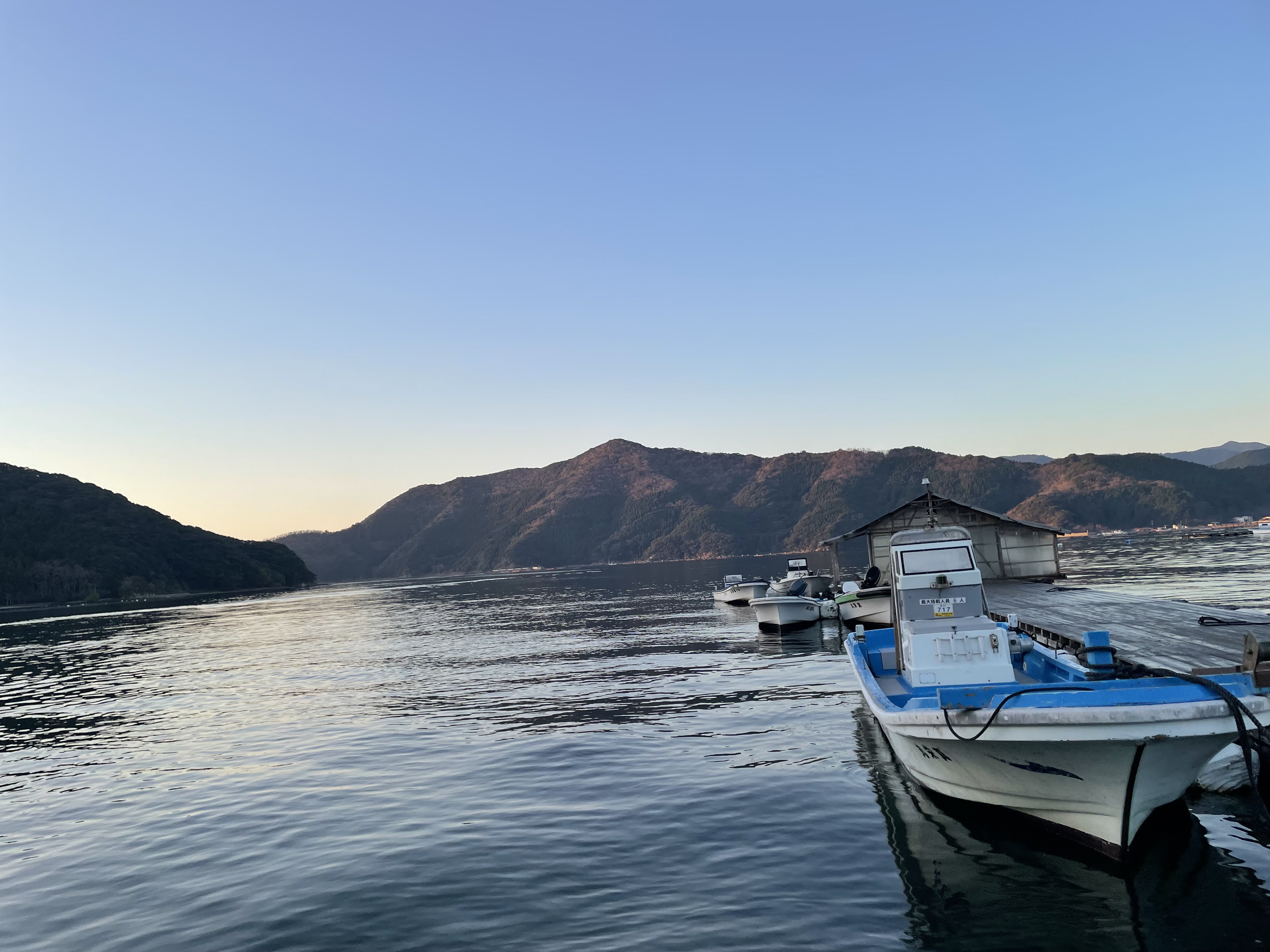 今朝は湾内、沖ともに凪いでいます