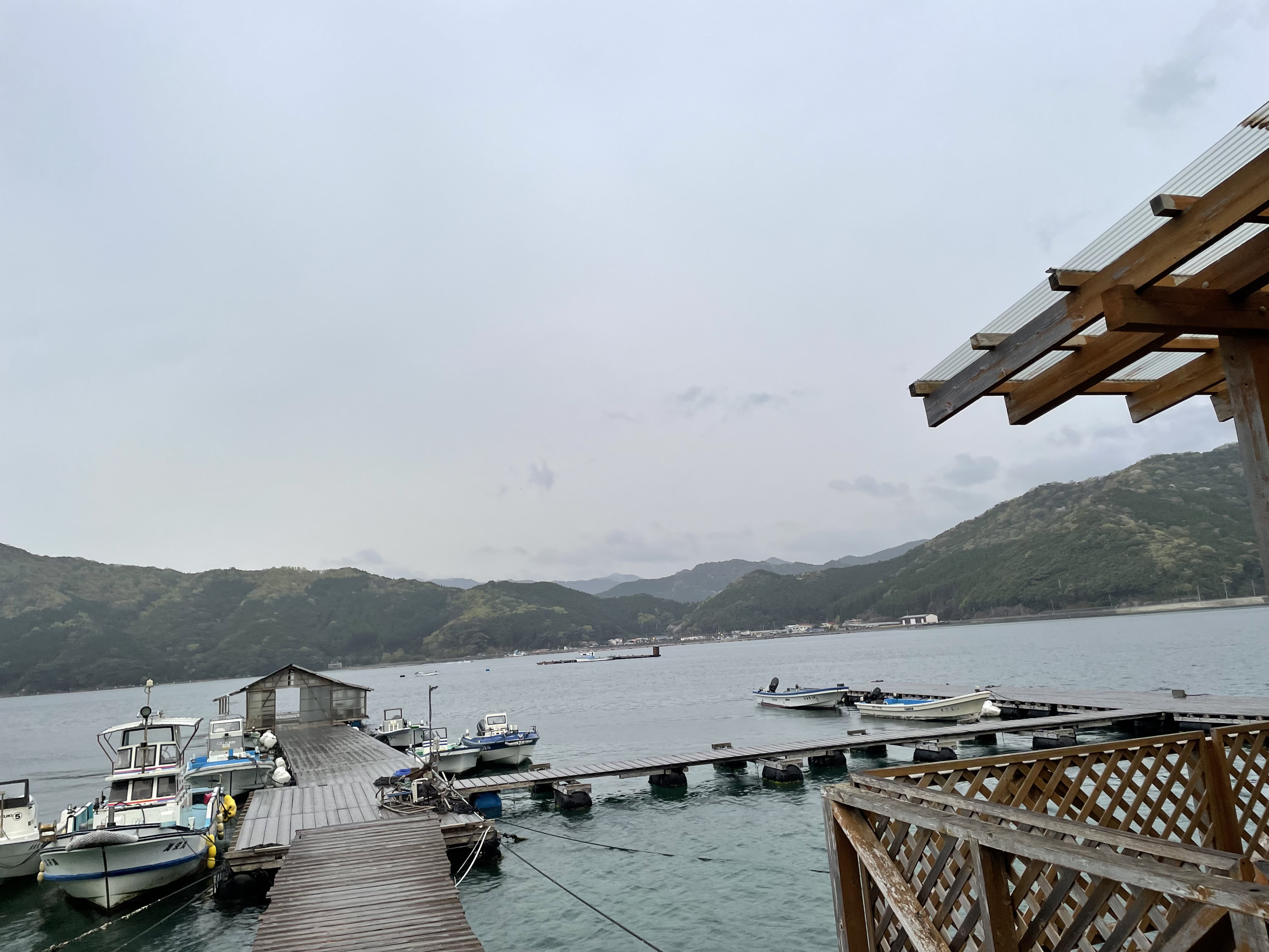 今朝の湾内は雨、北風が入っています