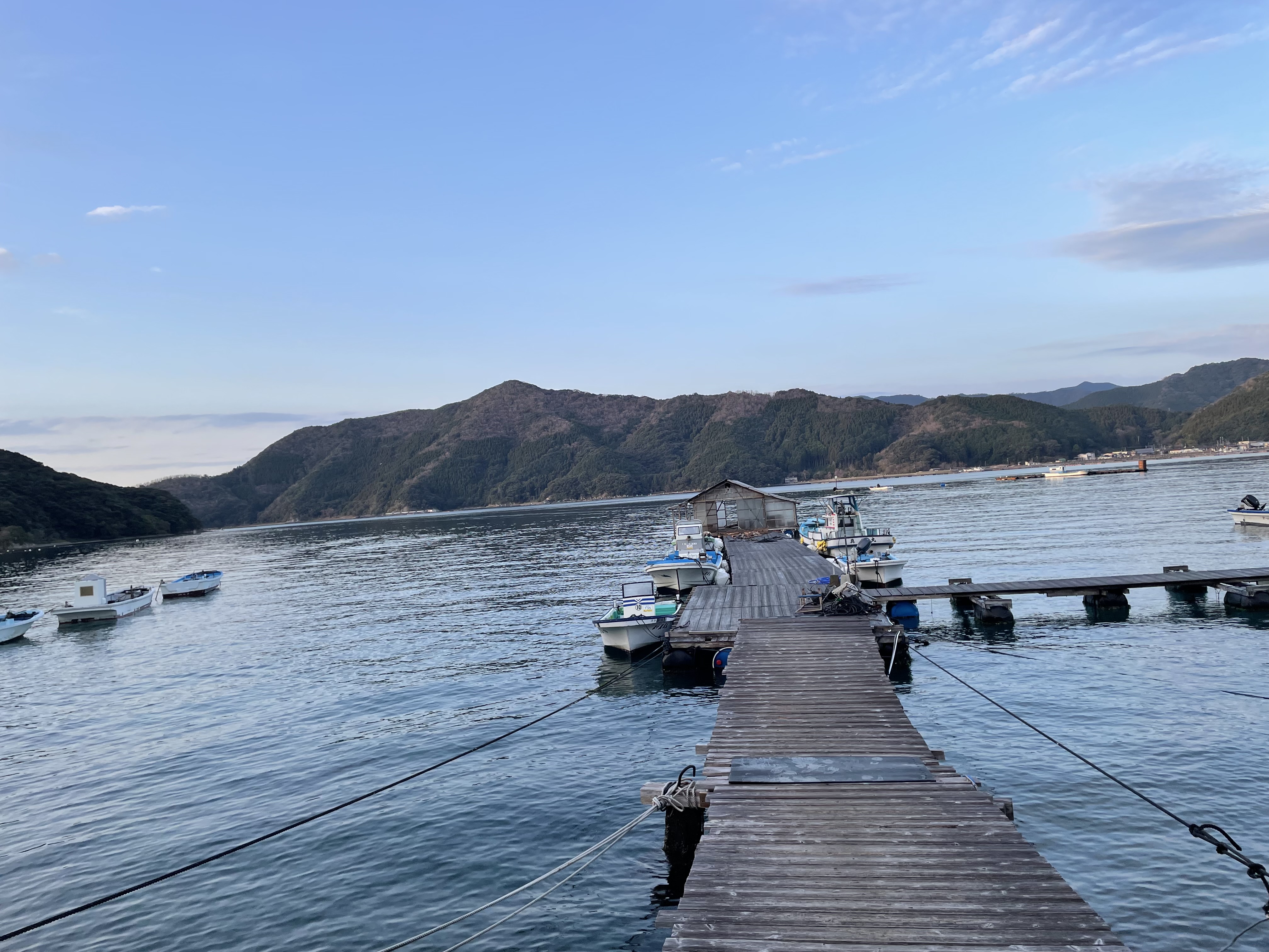 今朝の湾内は凪いでいます