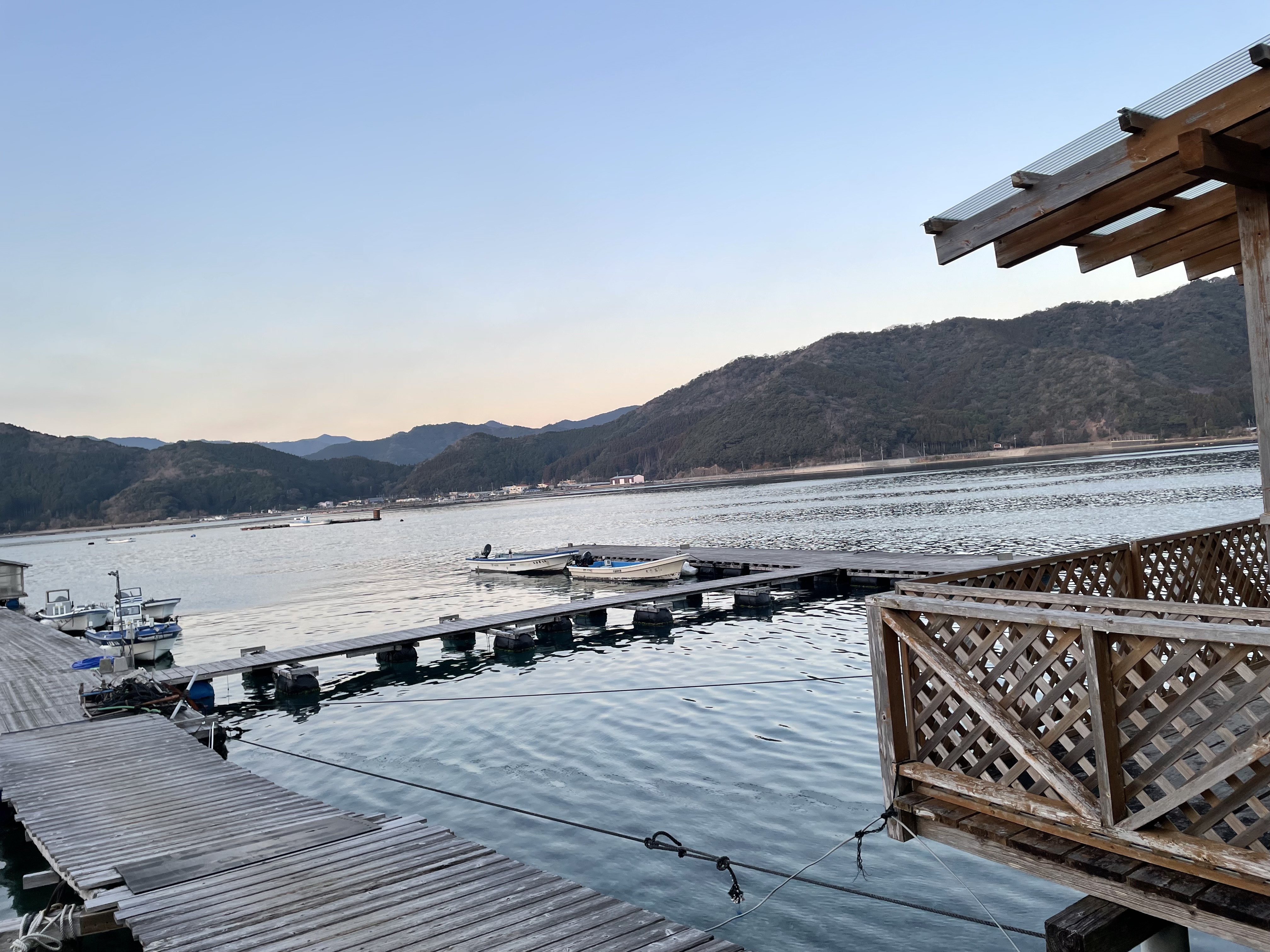 今朝は湾内、沖ともに凪いでいます