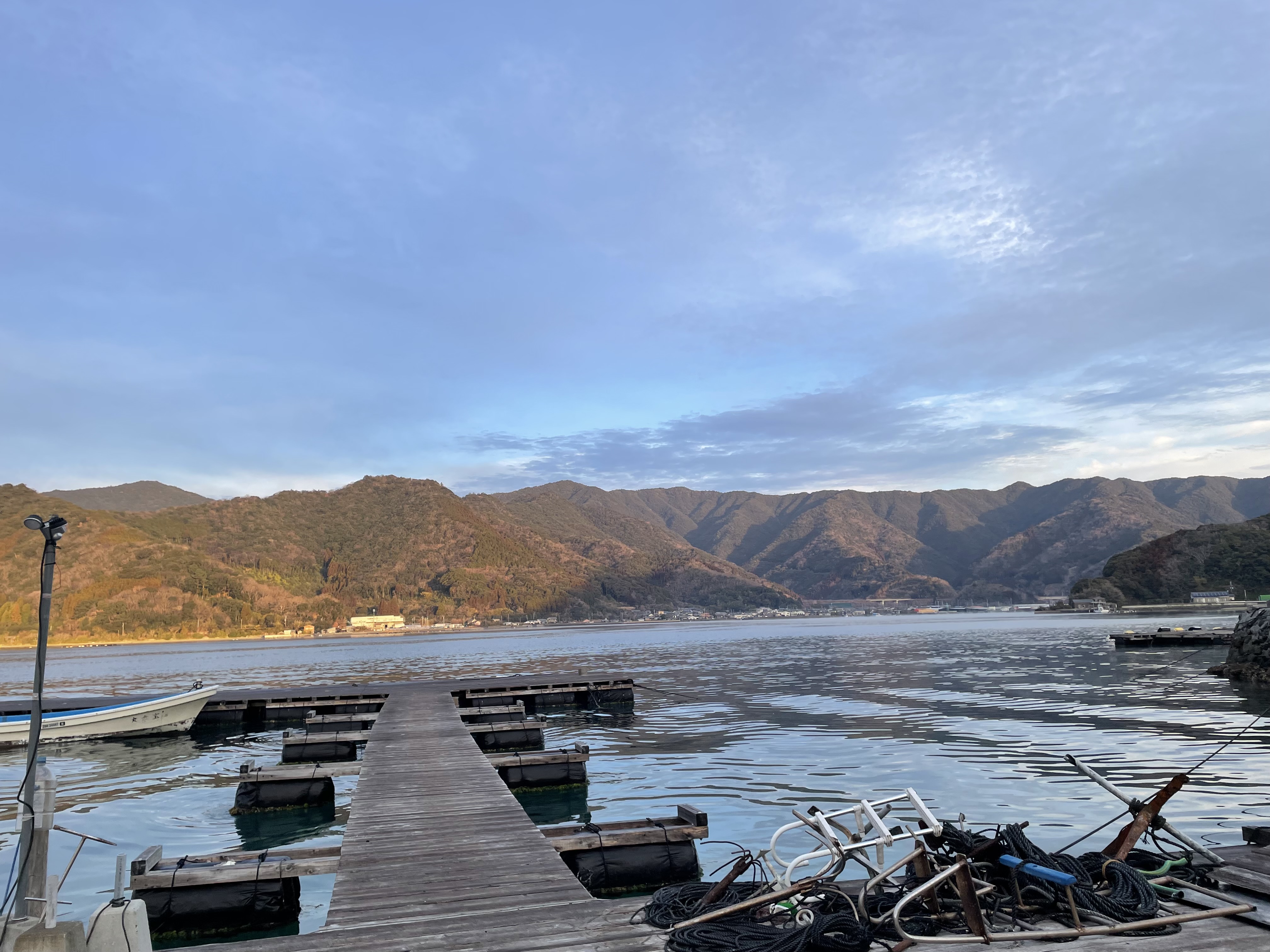 今朝は湾内、沖ともに凪いでいます