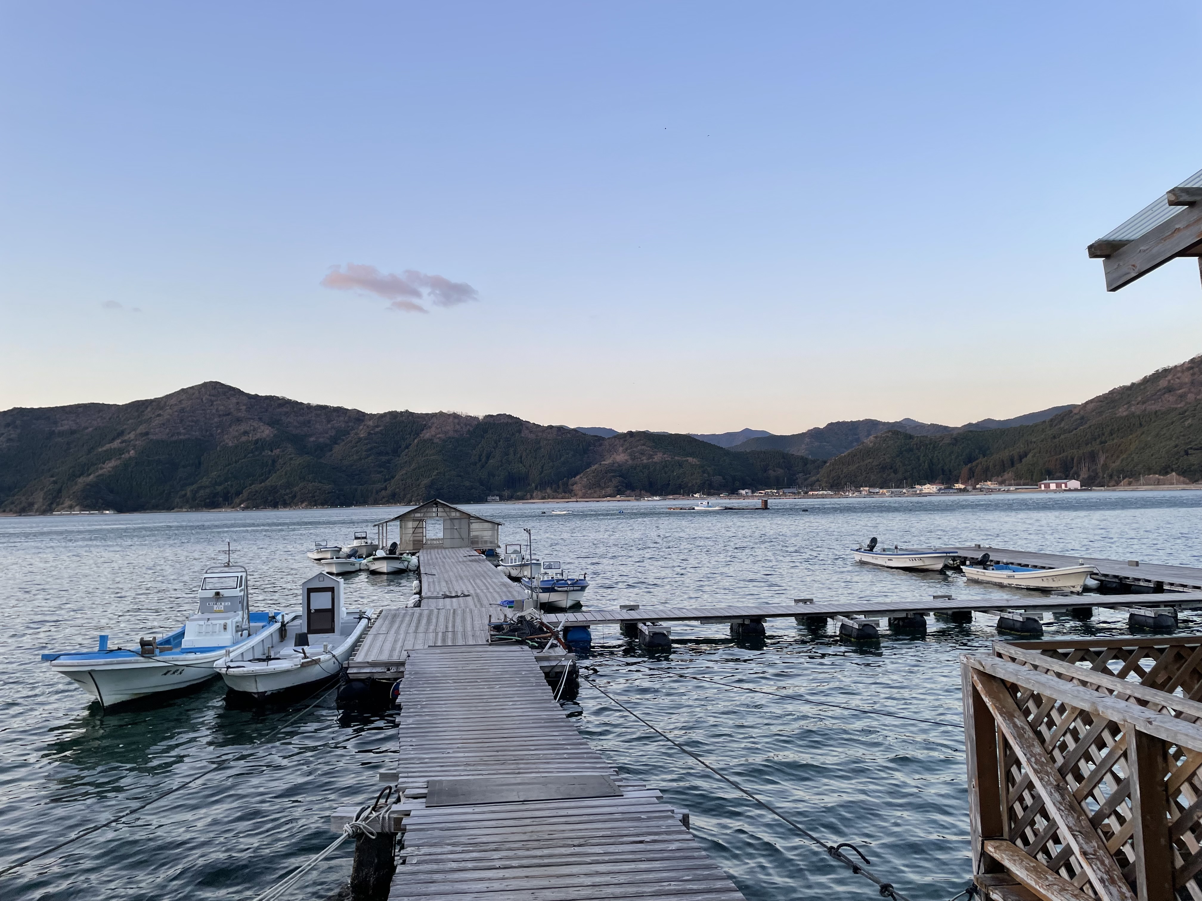 今朝は湾内、沖ともに凪いでいます