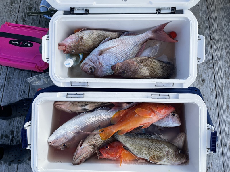 マダイ、オオモンハタ、アカハタ、カサゴなど揚がっています