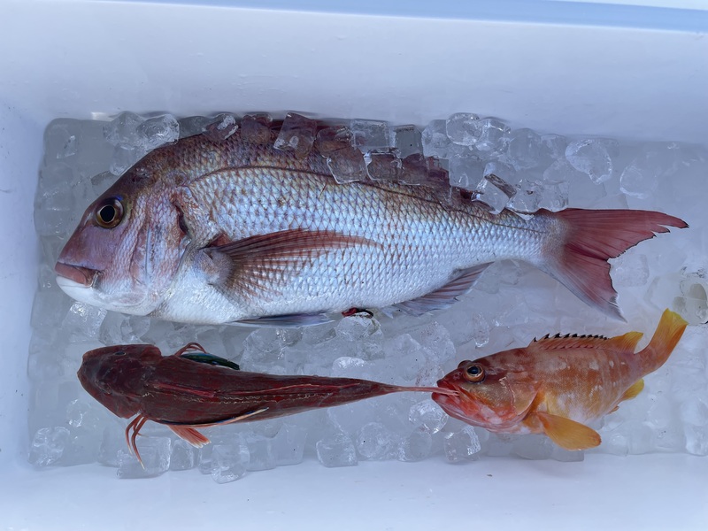 良型のマダイにアカハタ、ホウボウなど揚がっています