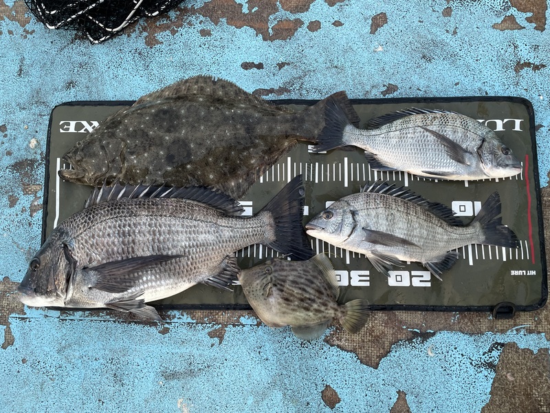 良型のチヌ(52cm)、ヒラメにカワハギなど揚がっています