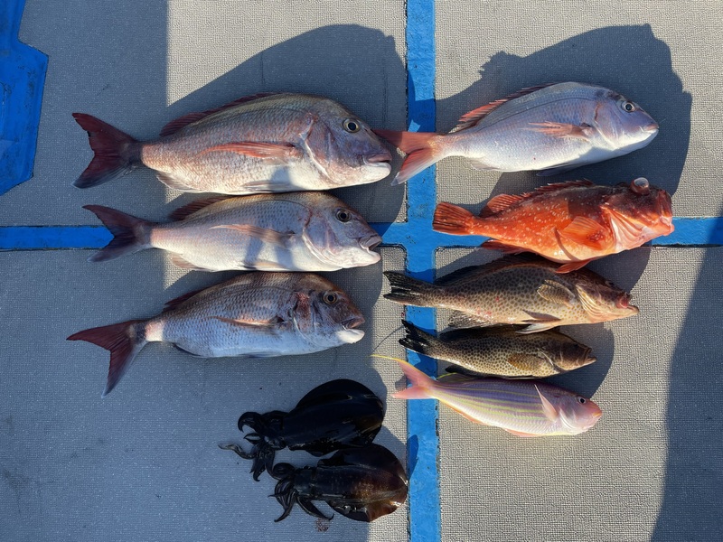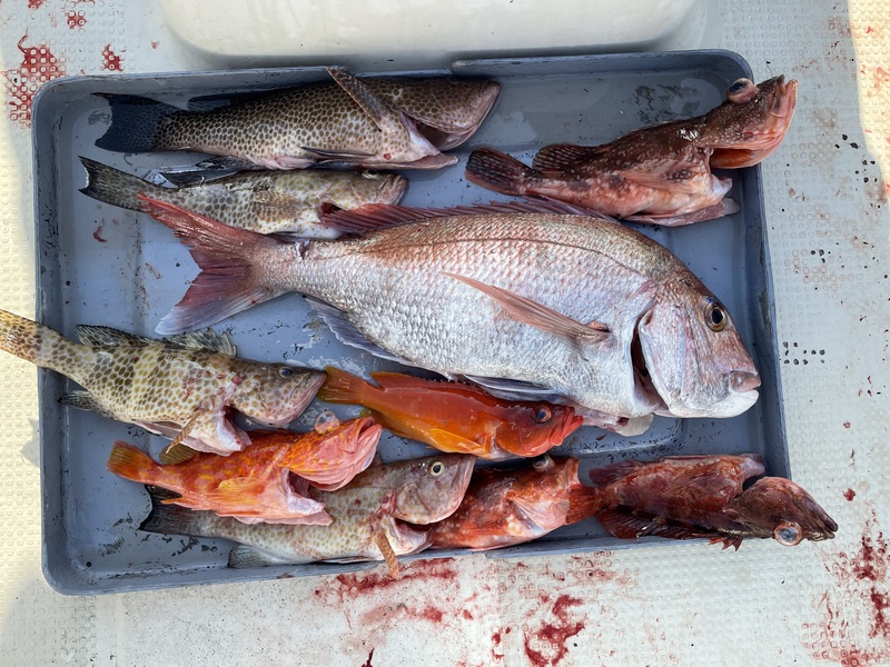 良型のマダイ、カサゴ、オオモンハタに