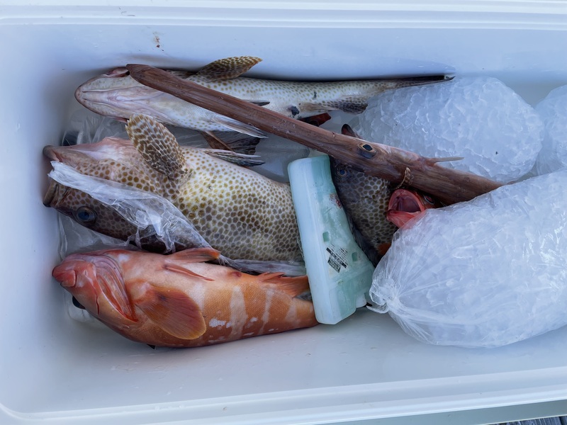 良型のオオモンハタ、アカハタにアカヤガラなど揚がっています