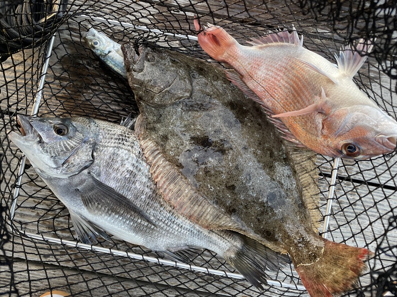 チヌ、マダイ、ヒラメなど揚がっています
