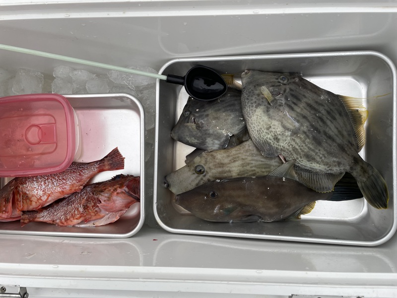 カワハギ、カサゴなど揚がっています