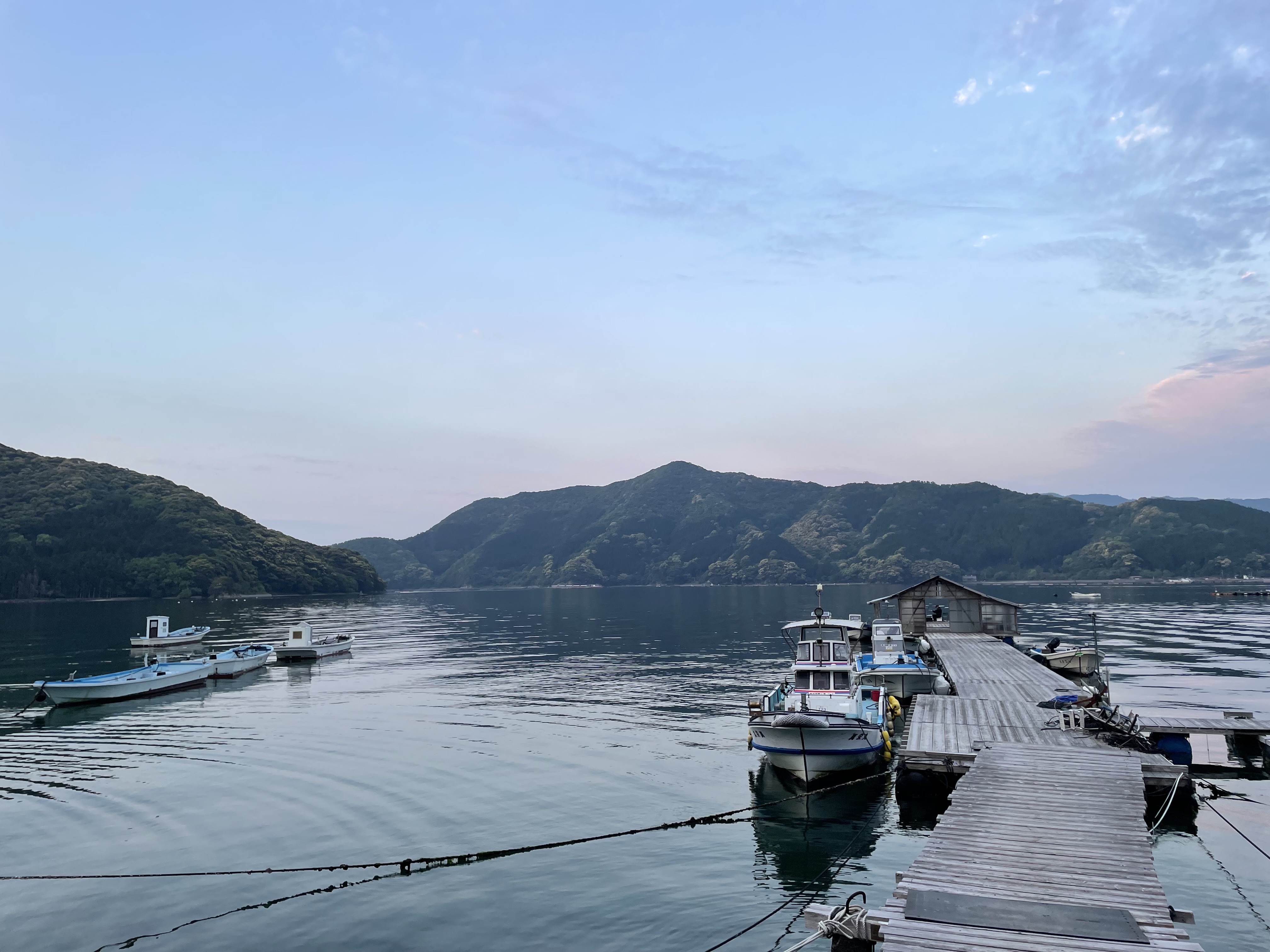 今朝の湾内は凪いでいます