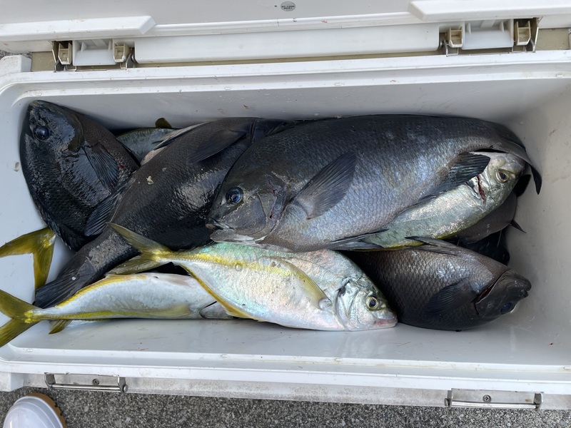 ハマチ、マダイ、オオモンハタ、アカハタ、ホウボウなど揚がっています