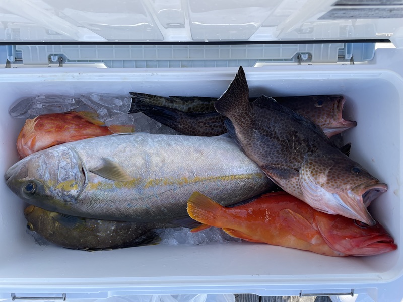 カンパチ、オオモンハタ、アオハタ、アカハタなど揚がっています
