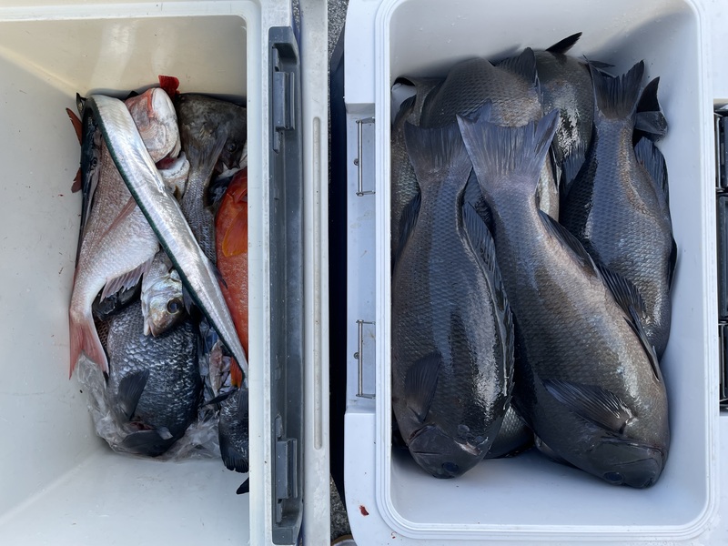 マダイ、アカハタ、メイチダイ、オキサヨリ?など揚がっています