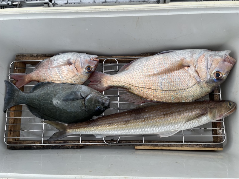 マダイ、クロ、エソなど揚がっています