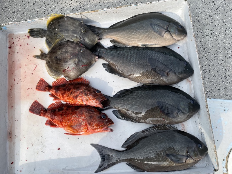 クロ、カワハギ、カサゴなど揚がっています