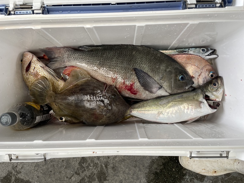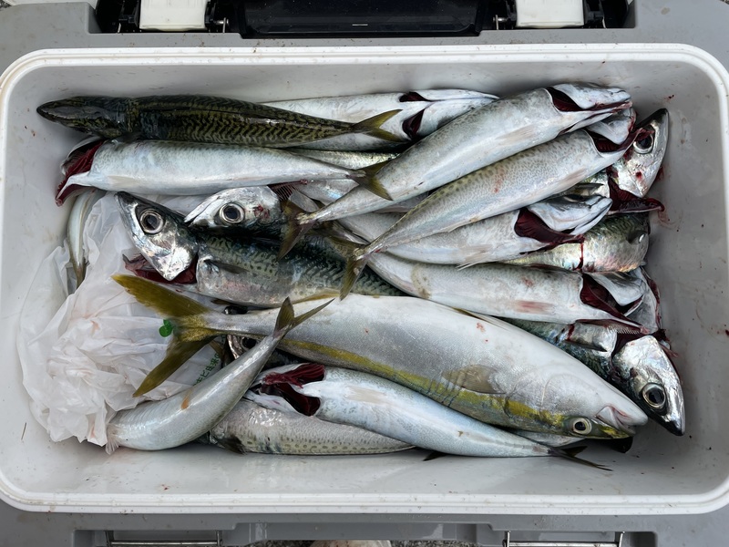 オオモンハタ、マダイ、メイチダイ、サバなど揚がっています