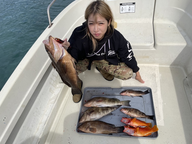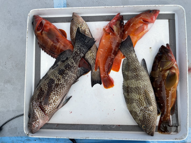良型のオオモンハタにアカハタ、モイカなど揚がっています