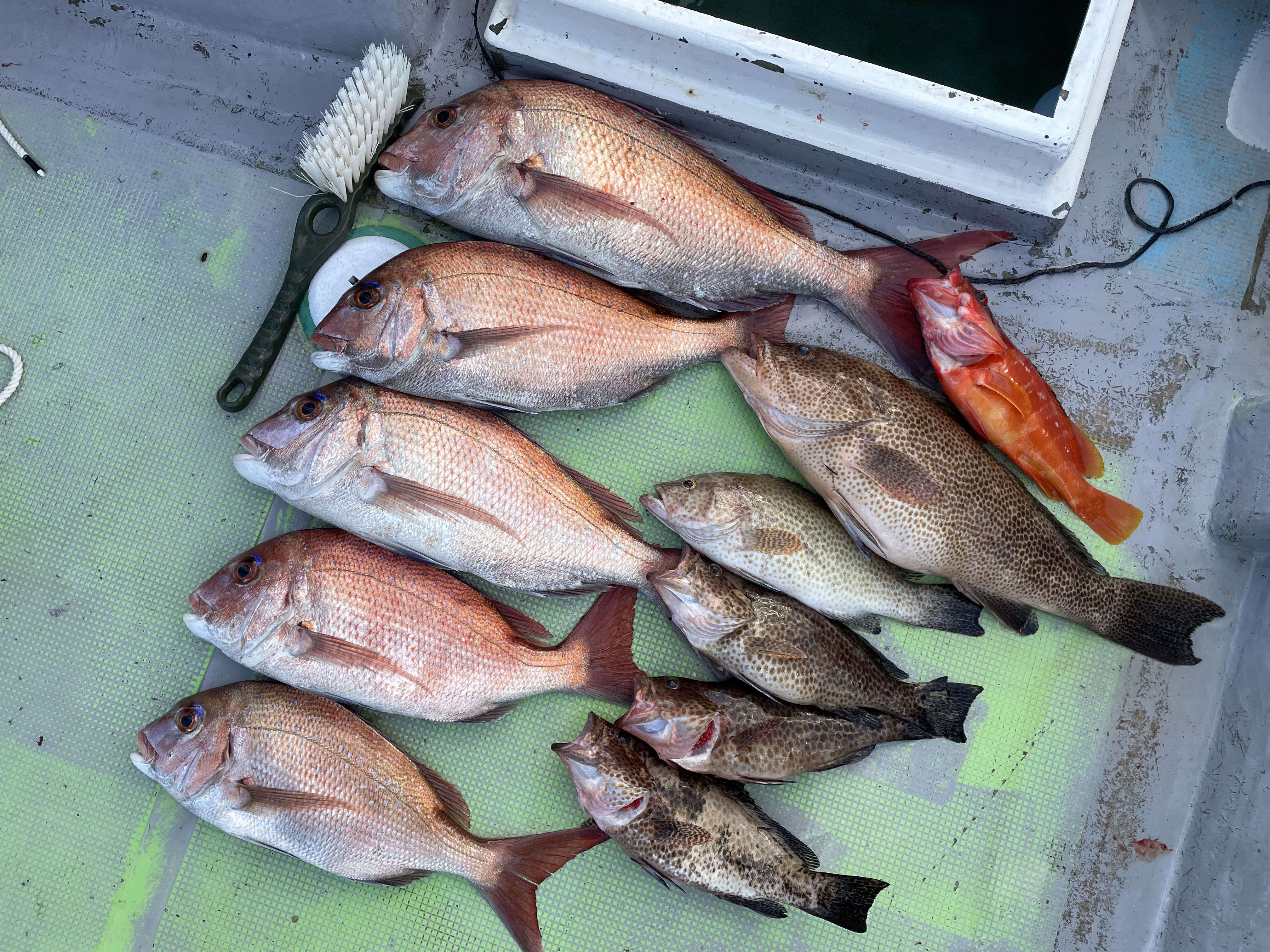 良型のマダイ、オオモンハタにアカハタなど揚がっています