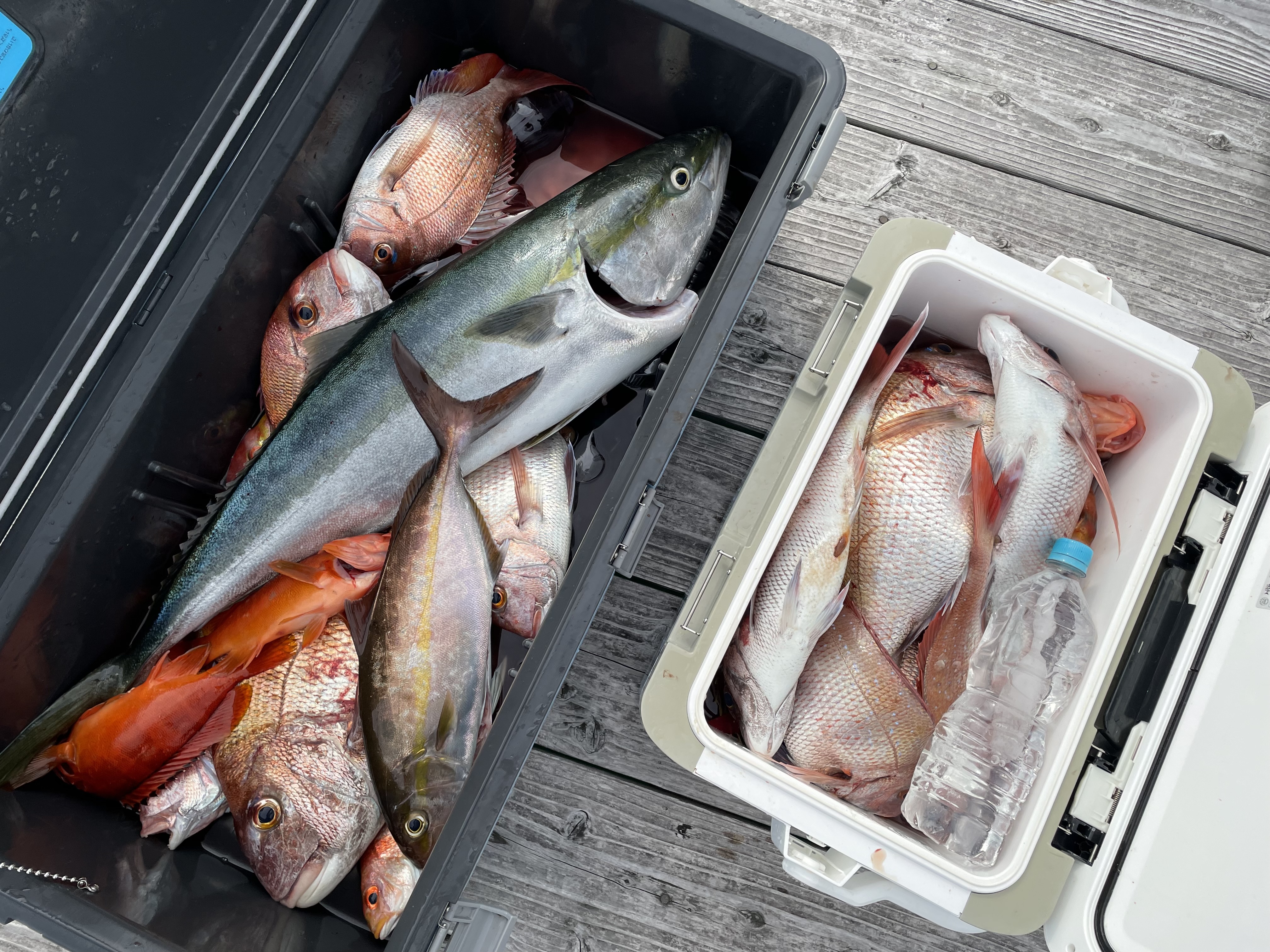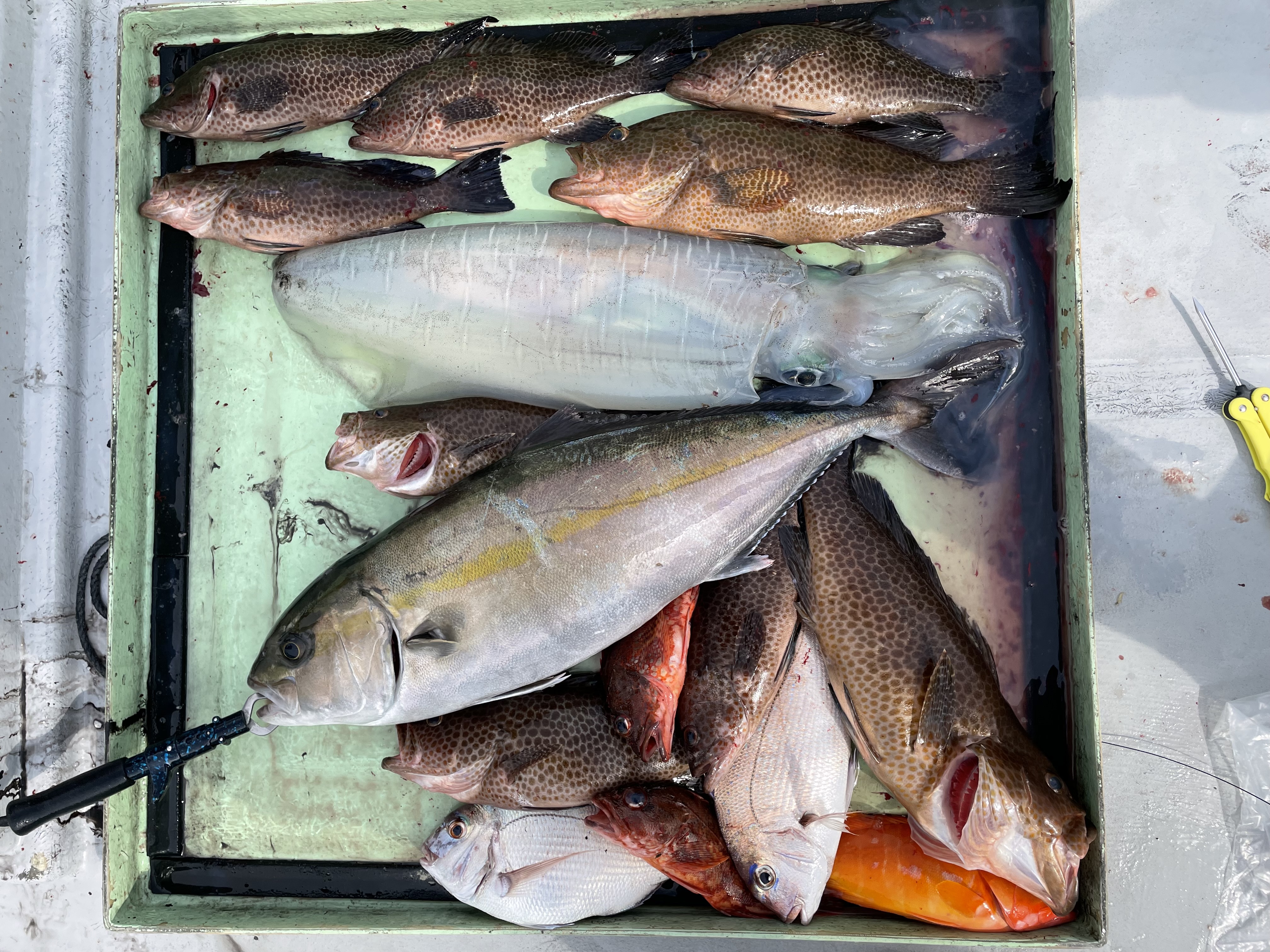 カンパチ、マダイ、アカハタ、カサゴなど揚がっています
